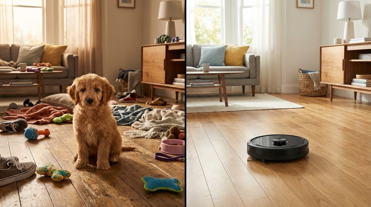 Вот так бывает. Ребёнок полгода просил четвероногого друга. Получил круглого. Без ног, без хвоста, зато с синим огоньком. И счастлив. И мама счастлива. И полы чистые.