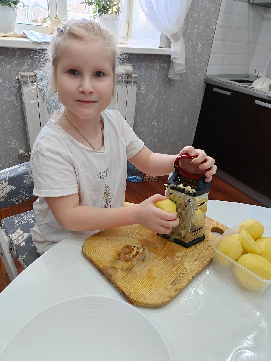 Василиса помимо занятий и игр очень любит помогать мне готовить. Мамы думаю поймут, что я имею ввиду. Пока её вовлеченность конечно процесс замедляет в какой-то степени (самой быстрее сделать) . Мы никуда не спешим, пусть ребёнок учится и развивается.