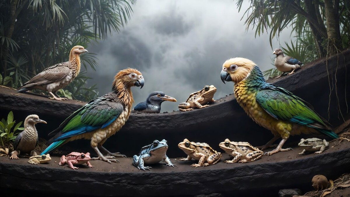 Издание Popular Mechanics со ссылкой на австралийский журнал палеонтологии рассказывает о найденной в пещере на Северном острове Аотеароа Новой Зеландии коллекции окаменелостей. Они дали возможность познакомиться с древними лесными видами, которые обитали в этих местах свыше миллиона лет назад. Среди окаменелостей удалось выявить 12 видов птиц и 4 вида лягушек, причём среди птиц некоторые виды ранее не встречались. Эти окаменелости позволяют взглянуть на древний мир, совершенно не похожий на сегодняшний. К тому же сделанные находки устраняют ряд недочётов в понимании закономерностей вымирания видов, которое происходило до прихода людей в эти места всего 750 лет назад. Команда во главе с доцентом Университета Флиндерса Тревора Уорти (Trevor Worthy) нашла окаменелости в пещере между слоями вулканического пепла. Каждый из этих слоёв появился по причине крупного извержения вулкана, одно из которых случилось 1,55 млн лет назад, другое - миллион лет назад. Большинство видов, к которым относя