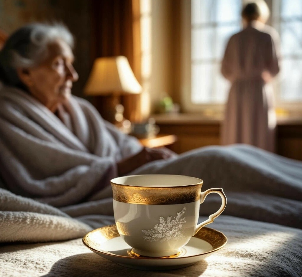Людочка вошла в комнату, неся на маленьком подносе ту самую фарфоровую чашку с золотой каемкой — праздничную, которую доставали лишь по особым дням. Пар от нее струился густой, белесой дымкой.