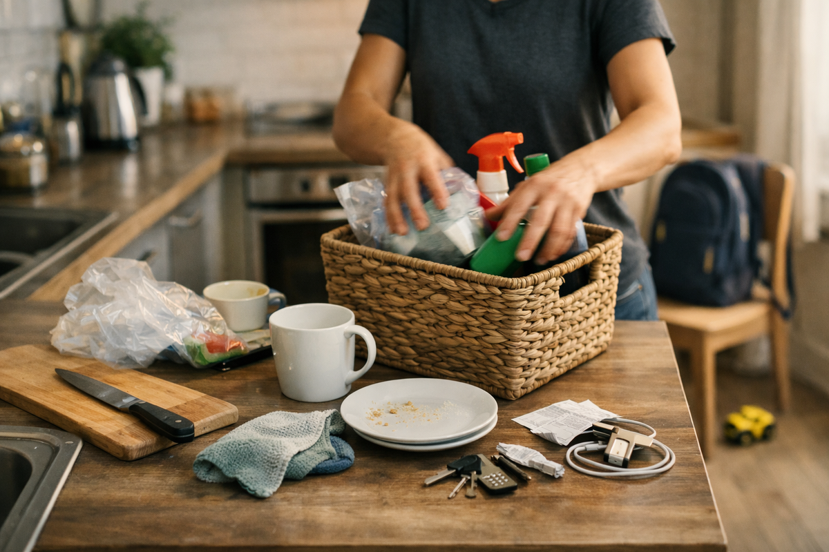 Вы вроде бы и убрались… а кухня всё равно выглядит “уставшей”. Знакомо? Самое обидное — гости могут зайти «на пять минут», ребёнок в этот момент просит воды, а у вас в голове одна мысль: почему визуально всё так захламлено?! За четверть часа можно сделать так, чтобы кухня выглядела заметно чище и дороже, даже без генеральной уборки. Фокус простой: убрать из поля зрения вещи, которые “шумят” сильнее всего. Важно не начинать мыть всё подряд — сначала освобождаем поверхности, иначе вы просто размажете усталость по кругу. Кухня — коварное место. Здесь всё постоянно в работе: чайник кипит, кто-то режет яблоко, кто-то ищет зарядку, кто-то оставил кружку “на минутку”. А потом вы заходите вечером, когда ноги гудят, и понимаете: сил нет, но хочется, чтобы было аккуратно. Секрет в том, что чистота — это не только “отмыто”, а ещё и “ничего лишнего на виду”. Вот эти 7 вещей чаще всего портят картинку. 1) Губки, тряпки и перчатки на краю раковины