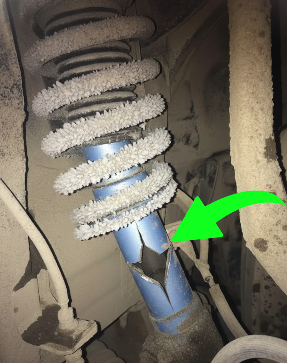 - Сальник штока. Это резинка, которая держит всё давление внутри. При резком ударе на "деревянной" стойке давление внутри может прыгнуть до 100+ атмосфер. Резинка, которая на морозе и так "дубовая", просто не выдерживает. Её выдавливает, или масло пробивает себе путь наружу. Всё, герметичность нарушена, газ вышел, масло потекло. Стойка — труп.