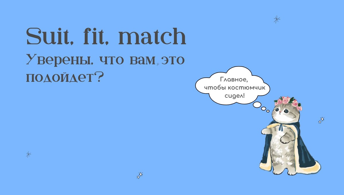 Уверены, что вам это подойдет? Suit, fit, match - три глагола, которые путают все (и зря)