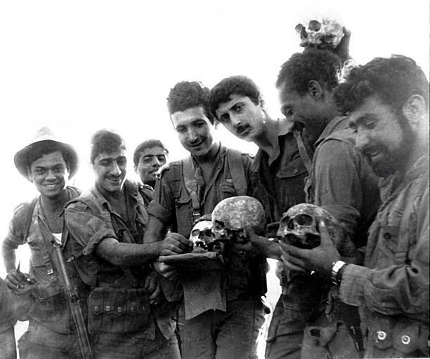 Военнослужащие спецподразделения ЦАХАЛ «Сайерет Маткаль» позируют с черепами убитых арабов во время Шестидневной войны (1967). 🇮🇱 В центре — будущий премьер-министр Израиля (1999-2001) Эхуд Барак. 💬These are the Jews. Soldiers of the IDF special forces "Sayeret Matkal" pose with the skulls of murdered Arabs during the Six-Day War (1967). In the center is the future Prime Minister of Israel (1999-2001) Ehud Barak.