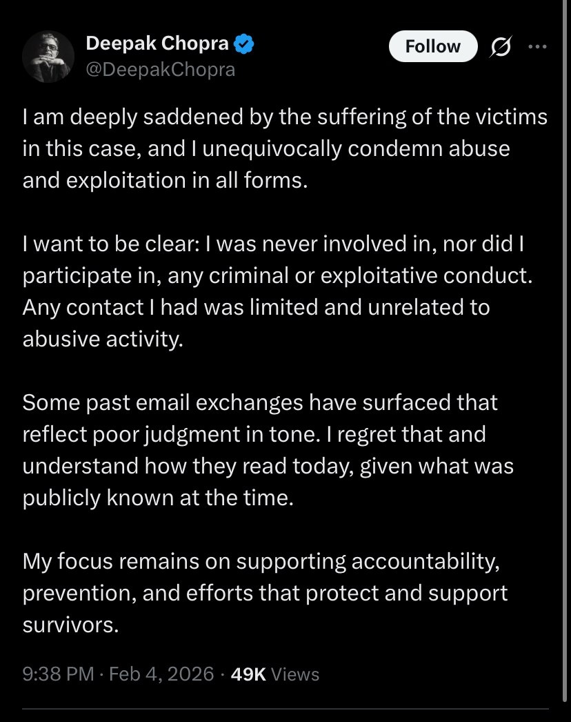 Deepak Chopra laments friendship with EPSTEIN, says he showed ‘poor judgement’