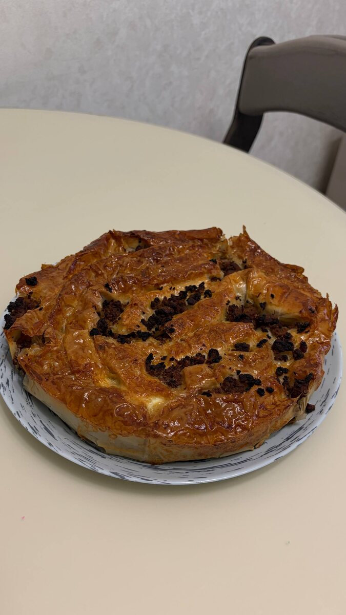 Хрустящий и необычный ужин - пирог с фаршем и тестом фило в виде улитки