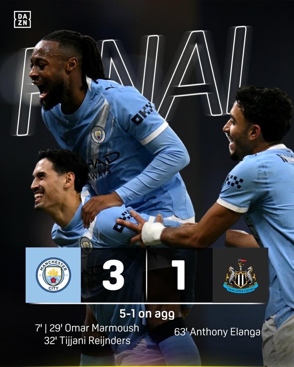 "Манчестер Сити" уверенно побеждает "Ньюкасл" и выходит в финал Кубка Лиги, где сразится с "Арсеналом" ❗️