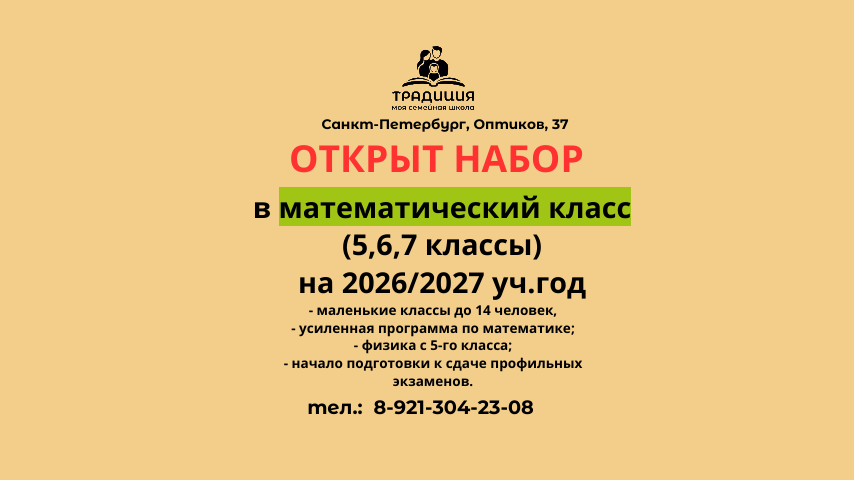 Физико-математические и гуманитарные классы в «Традиции» (СПб, Приморский район, ул. Оптиков, 37)