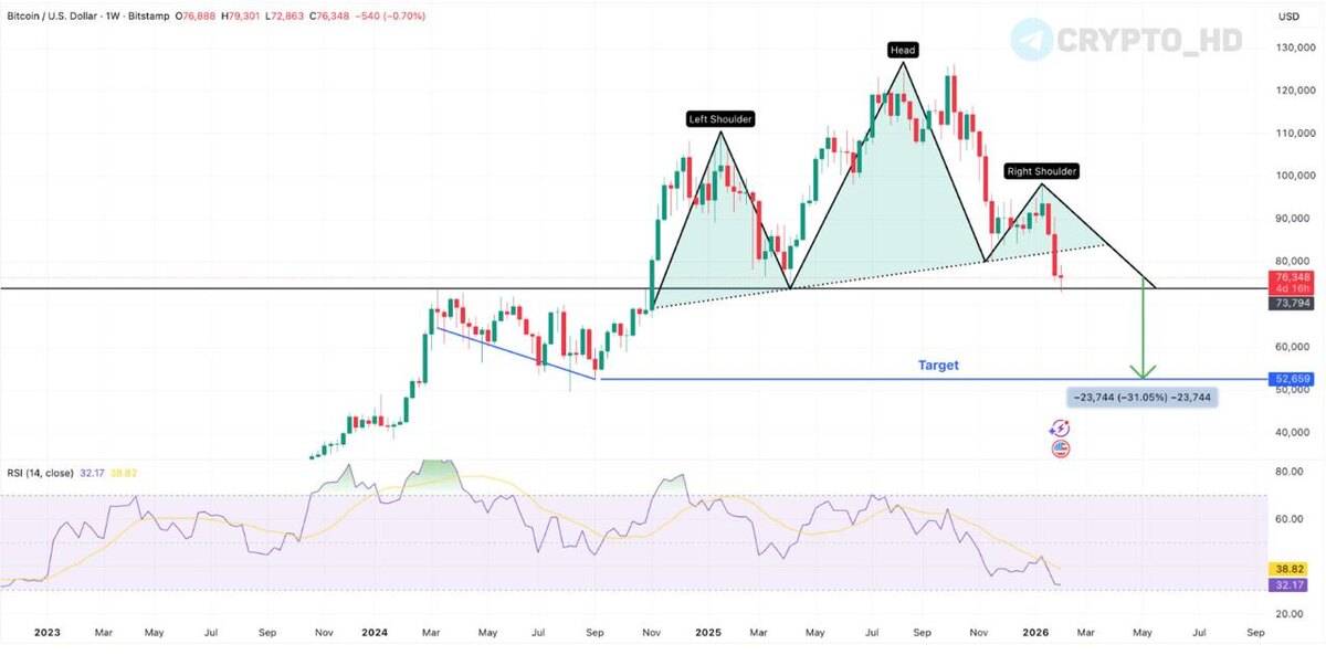 🩸 В Twitter набирают обороты идеи с отработкой паттерна «Голова и плечи» (ГиП) и дампом Биткоина ниже $60,000.