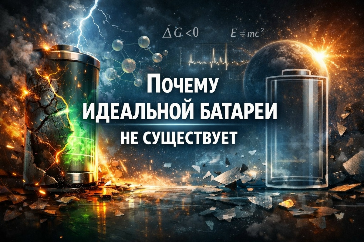 Всюду вокруг нас — аккумуляторы. В телефонах, ноутбуках, электромобилях, космических аппаратах. Они выглядят привычно, как будто всегда были частью мира. Но попробуйте присмотреться внимательнее и станет ясно: идеального аккумулятора не существует, и почти наверняка не будет. И не потому что кто-то «не додумался». А потому что физика и химия накладывают свои жесткие рамки.