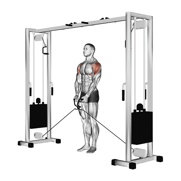 Махи руками в стороны в кроссовере — упражнение, направленное на проработку дельтовидных мышц. Это аналог махов в стороны с гантелями, но с разницей: в махах с гантелями нагрузка на дельты минимальная в начале движения, а в конце (в верхней фазе) — максимальная, а в кроссовере нагрузка одинаковая по всей амплитуде.