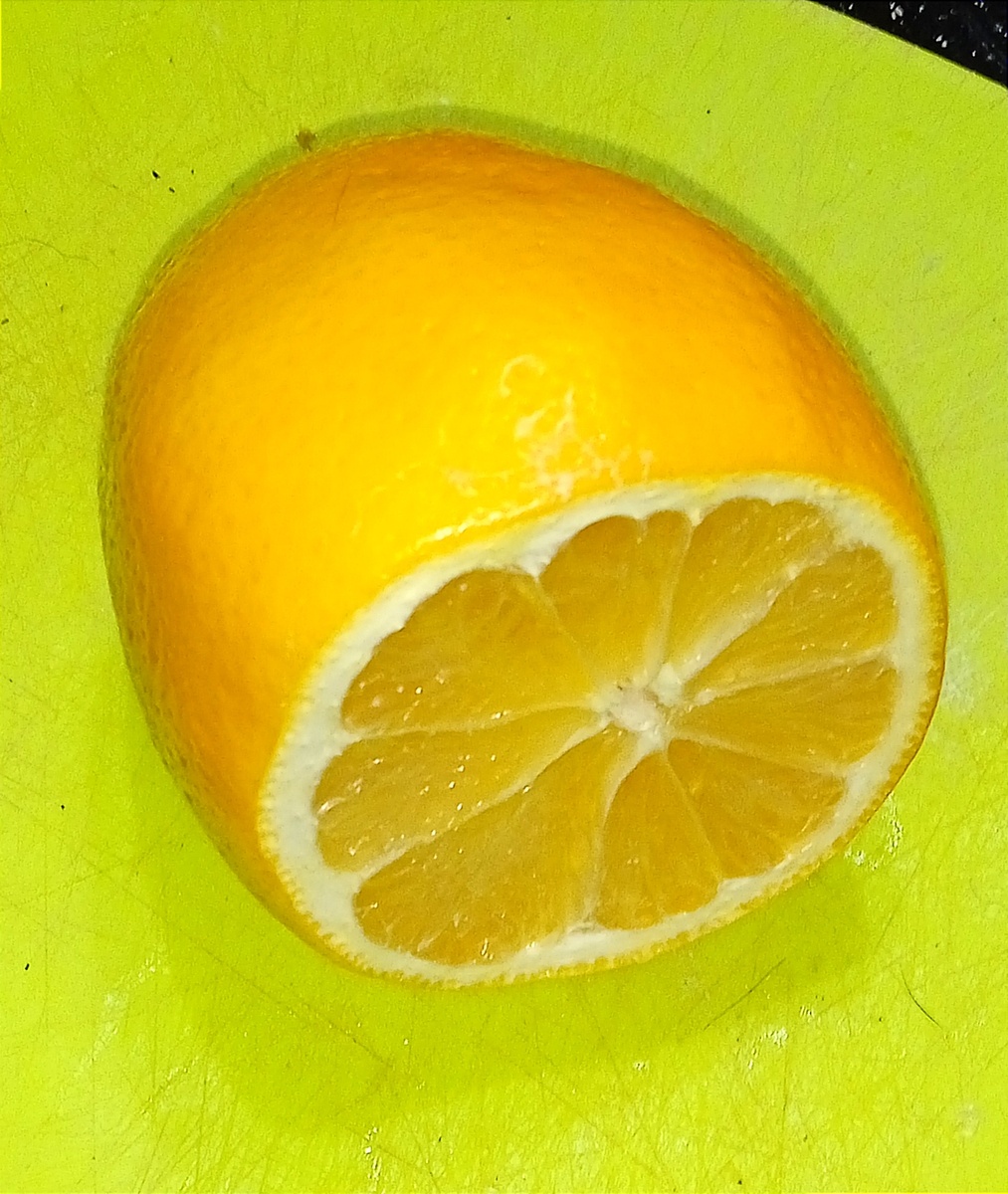 В каталоге мобильного приложения Пятёрочки, под обычными лимонами на развес, теперь может встретиться новый сорт. Назвала я его условно "Тёплый лимон", за его окрас шкурки и мякоти. В отличие от обычных лимонов, имеющий холодный оттенок жёлтого (который так и называется "лимонный"), они имеют ярко-жёлтый, тёплый окрас ( "цыплячий")