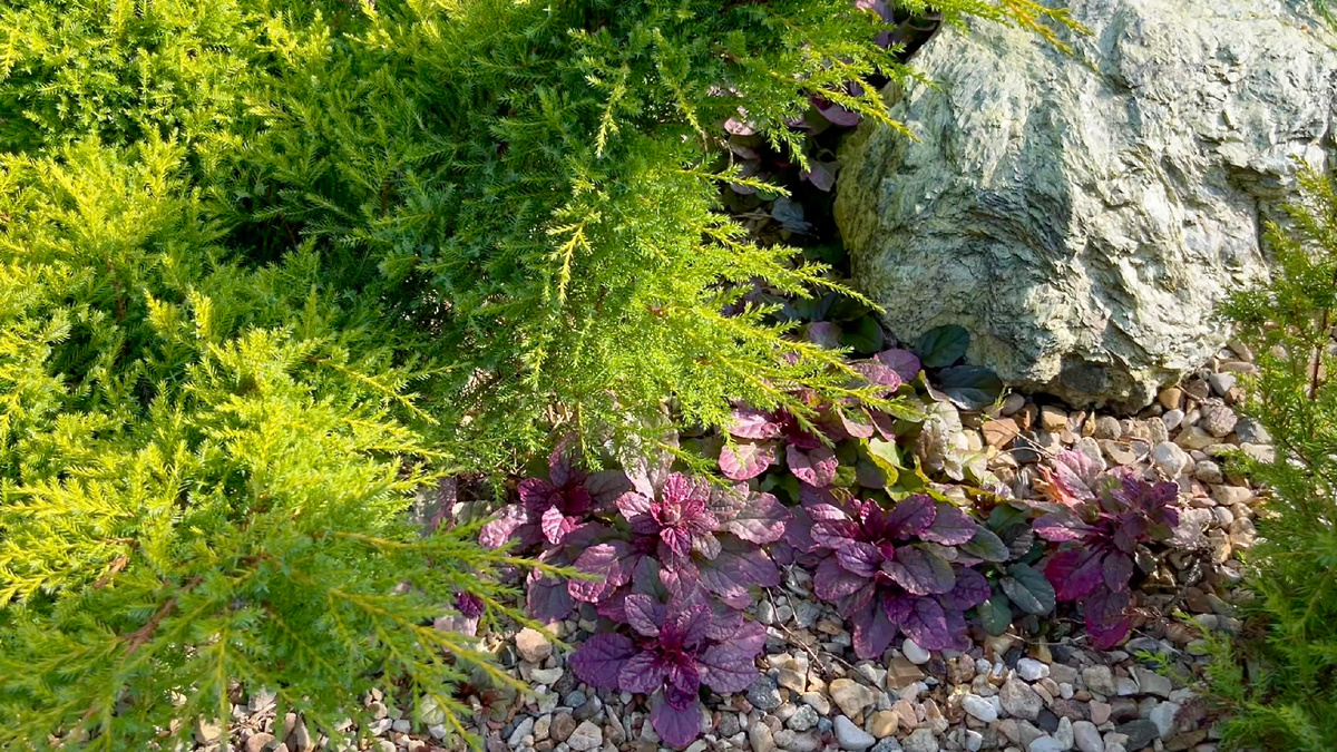 Какой бы площади не была альпийская горка, изящность растений, растущих среди камней, создает впечатление сада в миниатюре. В более демократичных рокариях большой площади достаточно органично смотрятся растения разной высоты, формы роста и размера — от достаточно крупных хвойных кустарников до миниатюрных травянистых многолетний растений, но без почвопокровных растений не обходится ни один каменистый сад.