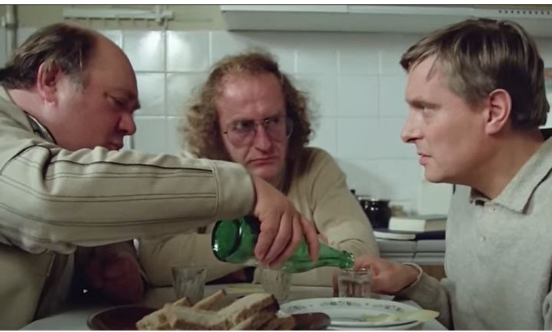 В фильме "Осенний марафон" есть сцена, где Бузыкин, Василий Игнатьевич и Билл Хансен пьют водку. Ее долго снимали, потому что она никак не получалась. Актеры пили в кадре обыкновенную воду.