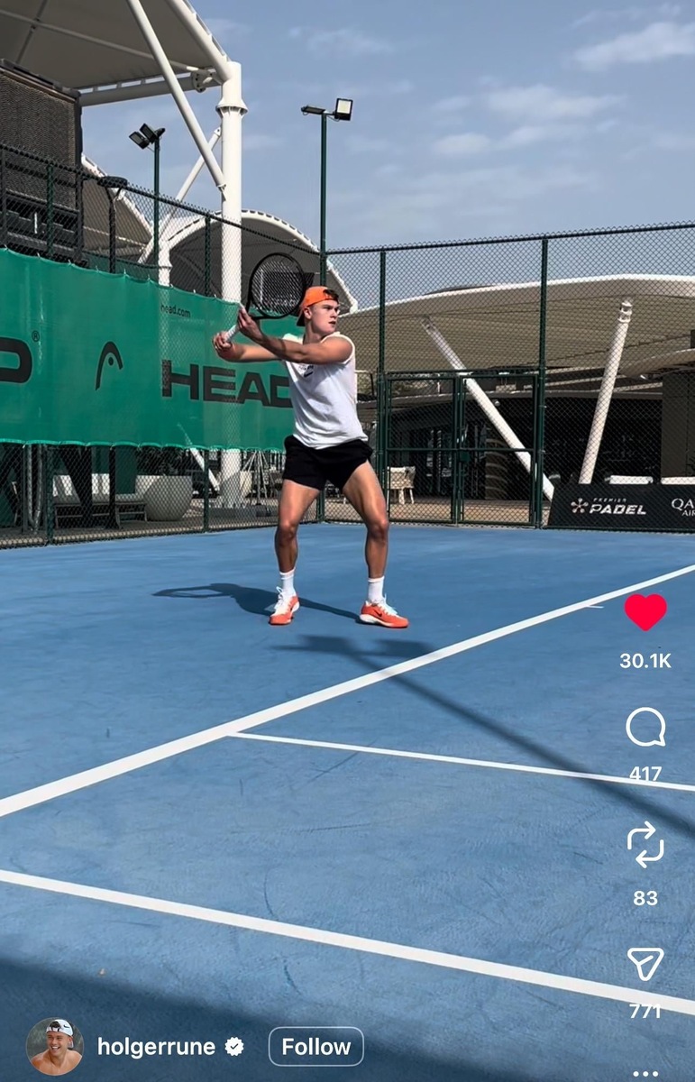 Руне тренируется с ракеткой, заклеенной черной лентой. Ваши дикие предположения? 🤔
