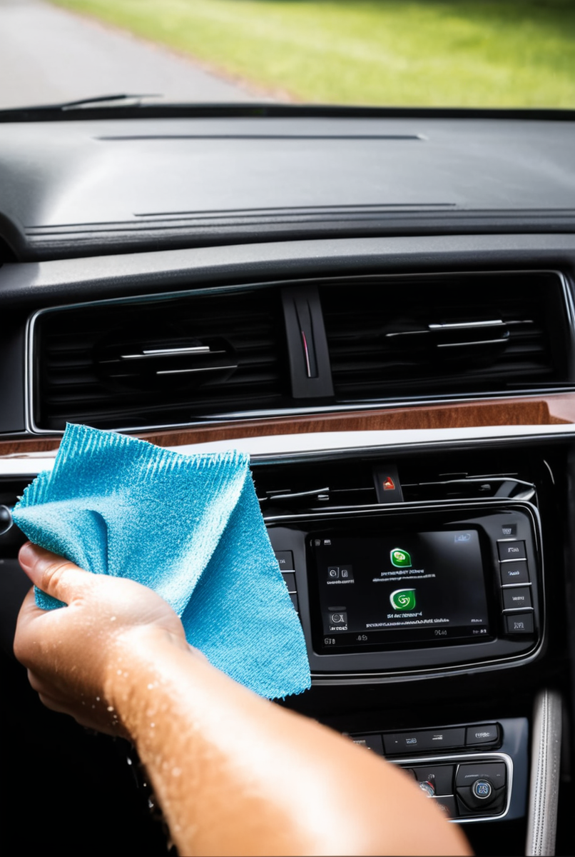 Подготовка к уборке в машине: удаление пыли с приборной панели, торпедо, центральной консоли и дверных карт