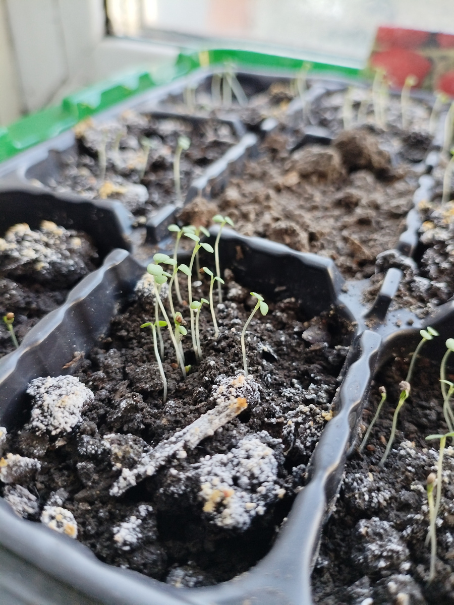 Сегодня сделала новые посадки в освободившиеся лотки и также посеяла укроп и петрушку.
