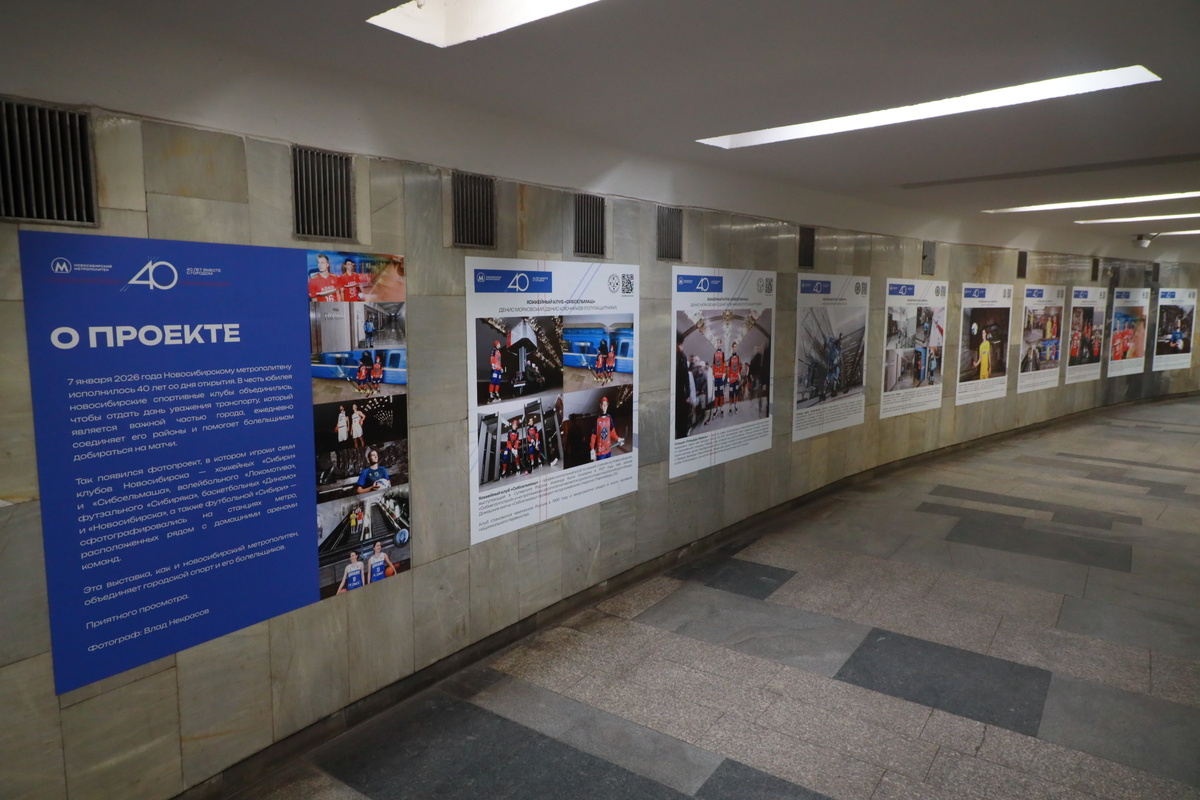 Уникальный фотопроект к 40-летию Новосибирского метрополитена представили ведущие спортивные клубы города. На снимках игроки позируют на станциях, расположенных в том числе вблизи домашних арен команд. Выставка будет работать весь месяц в переходе между «Красным проспектом» и «Сибирской». Уруйдаана Каженкина Проект стал данью уважения метрополитену — виду общественного транспорта, без которого уже невозможно представить жизнь сибирской столицы. Он помогает тысячам болельщикам вовремя попадать на матчи и способствует развитию города. В съёмках приняли участие игроки семи новосибирских клубов: хоккейных «Сибири» и «Сибсельмаша», волейбольного «Локомотива», футзального «Сибиряка», баскетбольных «Динамо» и «Новосибирска», а также футбольного клуба «Сибирь». Фотографии представят и на домашних матчах команд. Так, болельщики хоккейного клуба «Сибирь» смогут полюбоваться кадрами сегодня, 5 февраля, в ЛДС возле секторов Е8 и Е9, а в волейбольном центре «Локомотив-Арена» экспозиция откроется 7