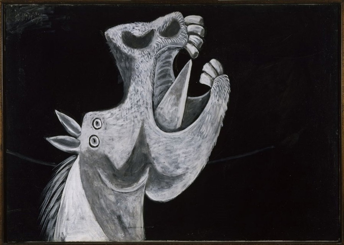 Но я хочу показать вам фотографию одной лошади и не уверен, что вы все её видели. Нет, конечно, может кто-нибудь и видел, а кто-то, - может, и нет. А я хочу, чтобы вы все её посмотрели. Почему? Потому, что эта лошадь - не настоящая. Именно такой лошади, нигде и никогда не было. Тогда почему такое внимание? Поверьте, - она его заслужила. Эта лошадь – нарисована. Её изобразил очень известный, и даже не побоюсь этого слова – великий, испанский художник ПАБЛО ПИКАССО.