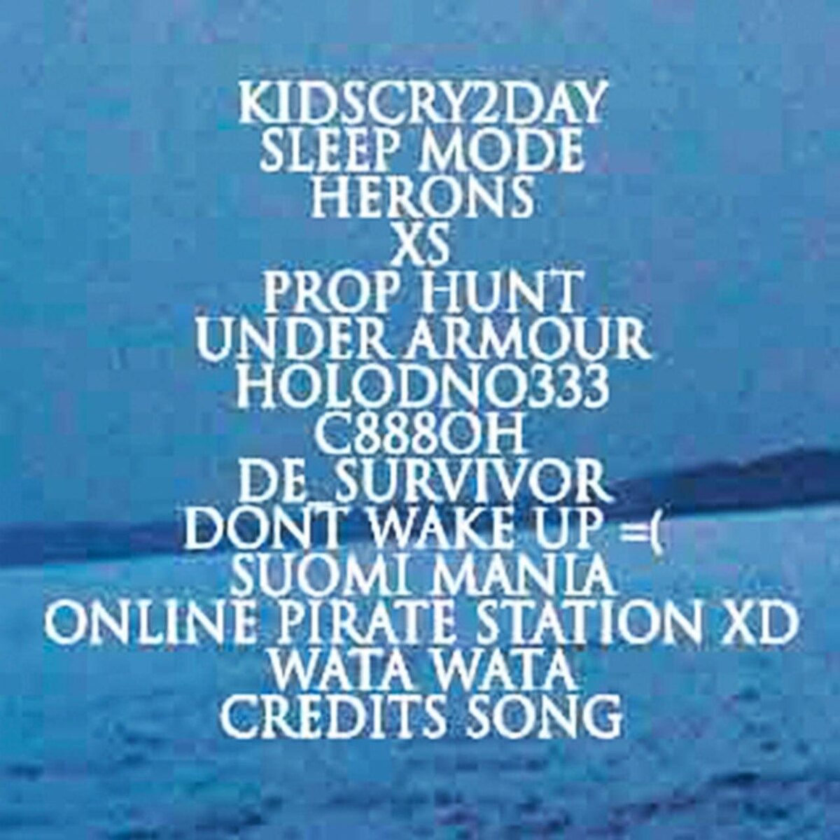 : 1. KIDSCRY2DAY 2. SLEEP MODE 3. HERONS 4. XS 5. PROP HUNT 6. UNDER ARMOUR 7. HOLODNO333 8. C888OH 9. DE SURVIVOR 10. DONT WAKE UP =( 11. SUOMI MANIA 12. ONLINE PIRATE STATION XD 13. WATA WATA 14. CREDITS SONG Выход пластинки ожидается в ближайшее время. @mainstreamusic