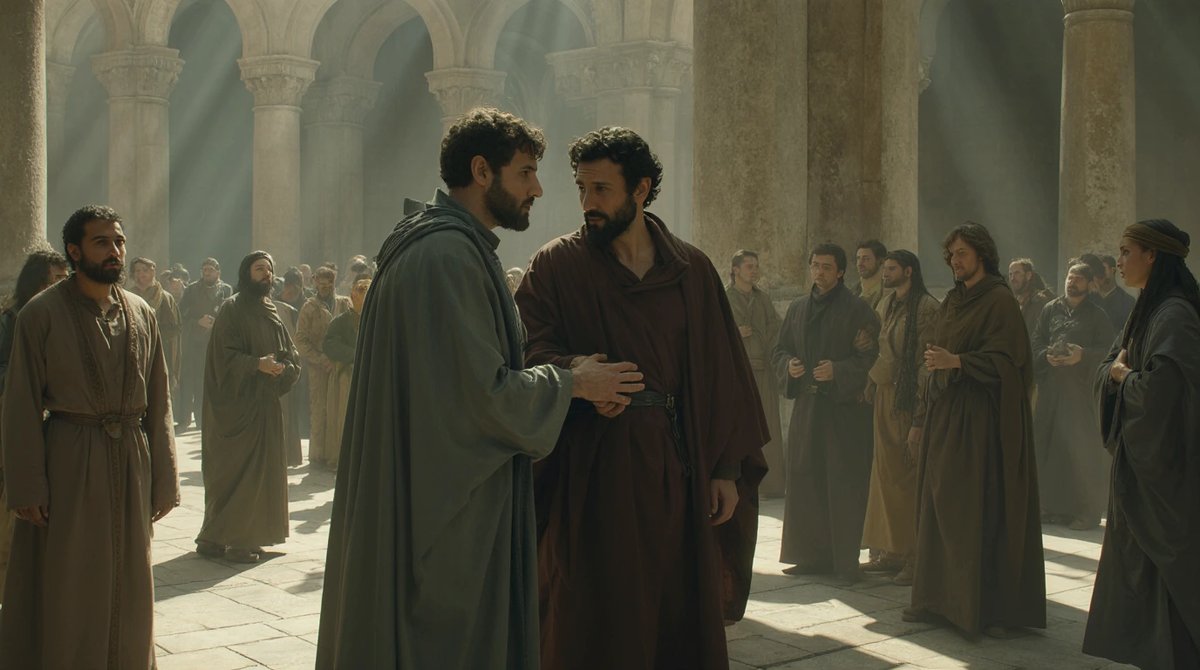 Он остановился перед Савлом. Между ними повисло молчание, напряженное, как тетива лука. Варнава первым нарушил его, и голос его, вопреки всему, звучал не с обвинением, а с тихим, твердым вопросом, предназначенным только для одного уха: — Савл? Я слышал, что с тобой говорил Господь на дороге в Дамаск.