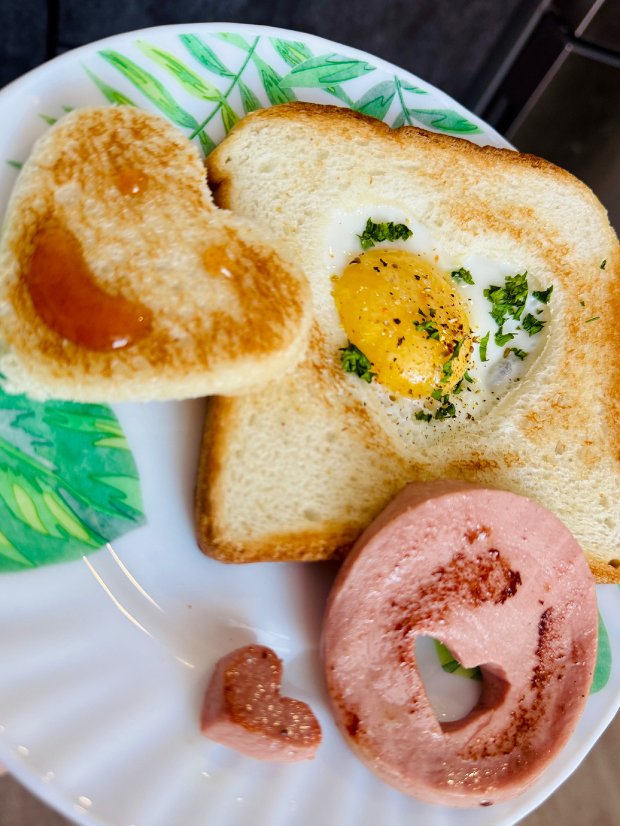 Конечно, хлеб из муки высшего сорта отнести к полезным продуктам не получится. Но если использовать цельнозерновой, ржаной и любой другой полезный хлеб, то блюдо будет сбалансированным и его вполне удастся отнести к здоровому питанию. При желании дополнить глазунью можно любыми свежими овощами и зеленью. Обжаривать глазунью лучше на сковороде с антипригарным покрытием в минимальном количестве
