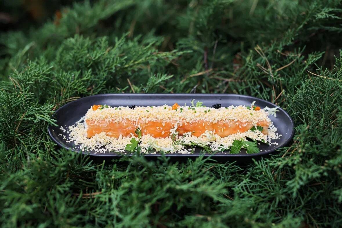В меню Chalet есть настоящая звезда – салат Мимоза. И надо сказать, были гости, которых удивлял этот «привет из советской кухни» по соседству с классическими европейскими вкусами. Впрочем, только до того момента первой пробы… Этот салат наши постоянные гости знают и любят. Чтобы узнать, почему – нужно понимать историю этого блюда. Салат Мимоза вместе со Столичным (Оливье) и Сельдью под шубой входит в главную тройку «советских» салатов, заправленных майонезом. Да, вы удивитесь, но были времена, когда майонез продавался только в Москве и Ленинграде и был предметом кулинарных мечтаний провинциальных гурманов. Изобретенный в начале 1970-х, салат Мимоза стал блюдом домашнего праздника. Это же сыграло с ним злую шутку: трудно оценить вкус, если хозяйка готовит по принципу «майонез все исправит»… Шеф Chalet Роман Семёнов возвращает Мимозе ее блистательный вкус и текстуру. Вместо сардин из консервной банки здесь запеченный лосось. Вместо промышленного майонеза – домашний. Добавляет пикантности