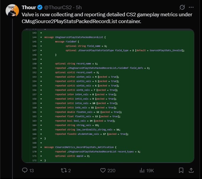 🤔 Valve начнут собирать больше данных об игровом процессе — об этом рассказал датамайнер Thour