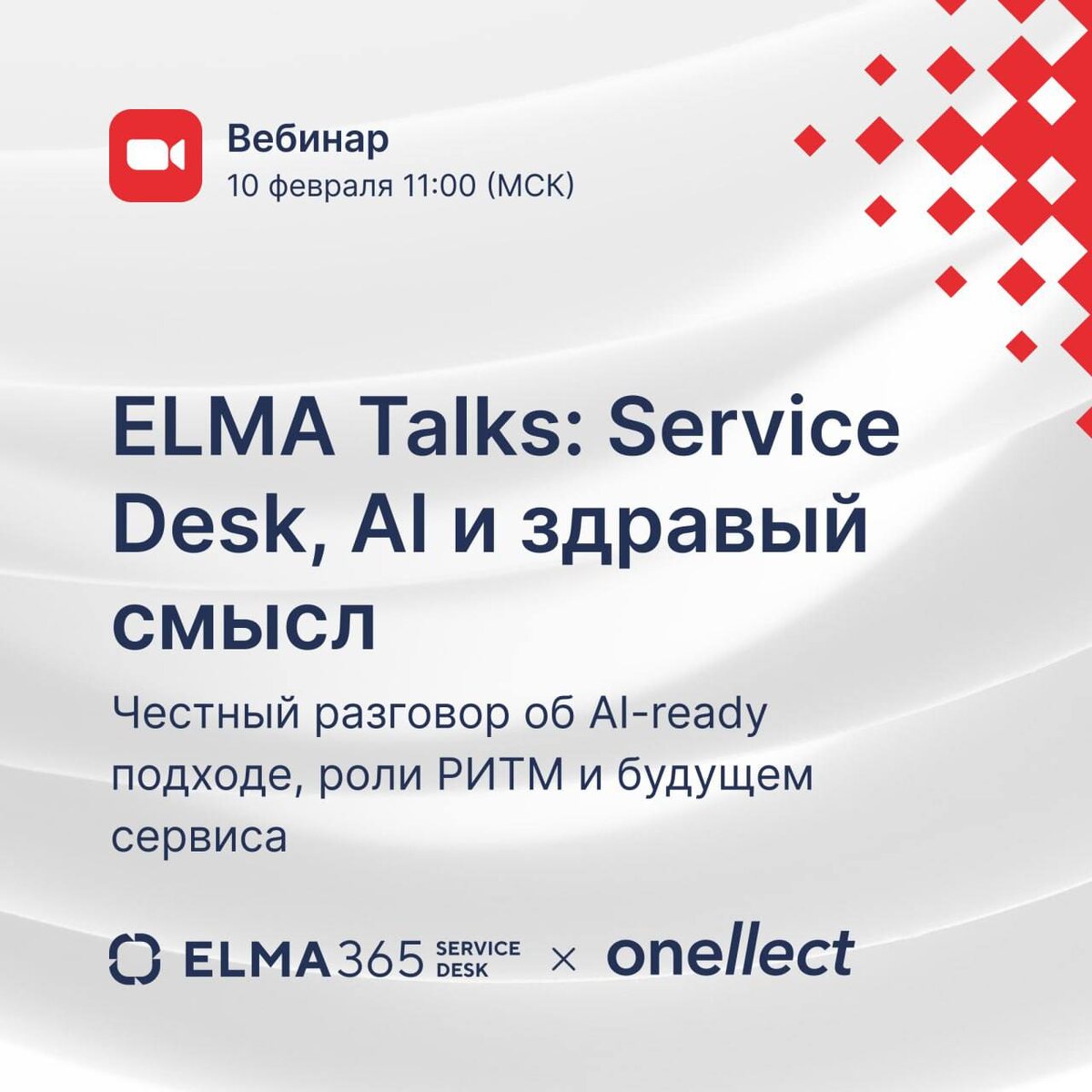 Честный разговор об AI-ready подходе, роли РИТМ и будущем сервиса 📅10 февраля, 11:00 (Мск) Искусственный интеллект всё активнее входит в сервисные функции — от ИТ-поддержки до клиентского сервиса. ❓Однако, остаётся ключевой вопрос: AI в Service Desk сегодня — это необходимый рабочий инструмент или всё ещё история про хайп и завышенные ожидания? В живом формате ELMA Talks обсудим: ✔️что значит быть AI-ready на практике; ✔️где проходит граница между реальной пользой AI и усложнением ради трендов; ✔️что такое РИТМ и как настроить современный Service Desk, который решает конкретные задачи бизнеса. Вместе с Константином Боколяром, техническим директором Onellect, поговорим о реальных рисках внедрения AI, ожиданиях команд и роли человека в сервисе. Разберёмся, с какими задачами AI уже сегодня справляется «на отлично», а где без экспертизы не обойтись. Спикеры: ➖ Константин Боколяр, Технический директор Onellect ➖ Иван Софронов, Product Lead ELMA365 Service Desk Регистрация ⬅️