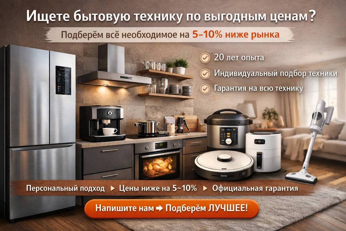! Хочу поделиться проверенной рекомендацией — продавцом бытовой техники. Если вам важно не просто купить технику, а получить грамотный подбор и честные цены без сюрпризов, вам точно сюда. Команда, которая подбирает технику уже 20 лет. Как работают: ✔️ задают правильные вопросы ✔️ подбирают технику под ваш дом / проект ✔️ считают оптимальные варианты ✔️ цены на 5–10% ниже рынка ✔️ официальная гарантия ✔️ всегда на связи Подходит для: — квартир и домов — дизайнерских проектов — тех, кто ценит сервис и прозрачность 👉 Подписывайтесь на канал и пишите — подберут технику без лишних переплат.