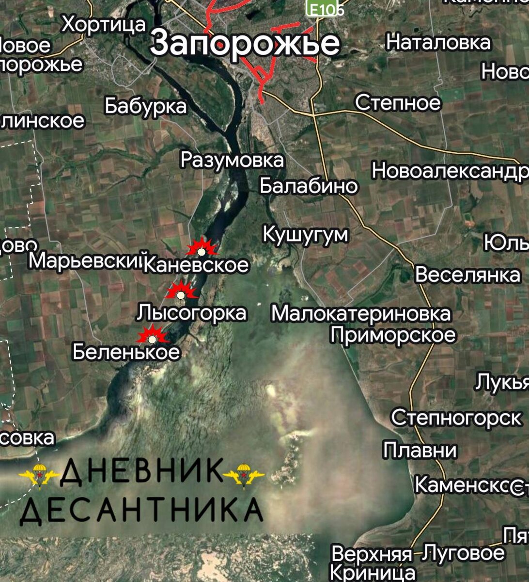 🪂 На Запорожском направлении ночью во время работы наших Гераней на противоположном берегу Днепра на рубеже Беленькое-Каневское были