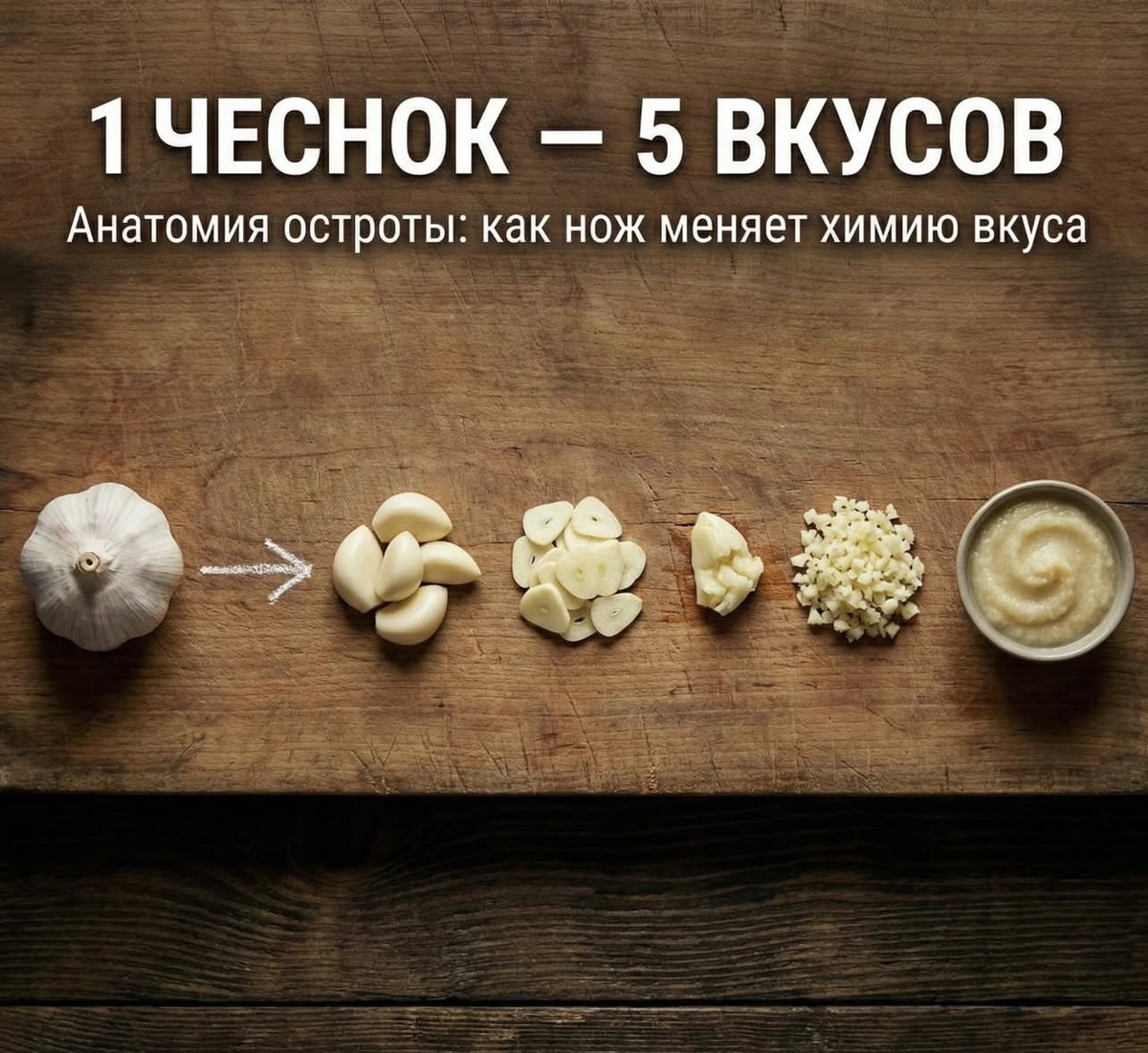 Вот пять основных состояний чеснока — от самого нежного до настоящей «химической бомбы».