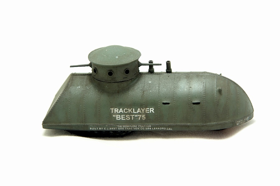 Модель интересного прототипа - одного из первых танков США, скорее бронетрактор. Бронированный Холт 75. Конечно не воевала. Была сделана из котельного железа.. В башне имитация пушек. Бэст 75 использовался на учениях только. По итогам испытаний на вооружение не приняли. Мне он напоминает танк Леонардо ДаВинчи.Мастер модель аналоговая. Переделал выхлопные трубы, расточил все отверстия. Были артефакты в виде наплывов смолы на корпусе. Сточил. /Модель этого танка наравне с танком Скелетом украсят любую коллекцию прототипов ПМВ.