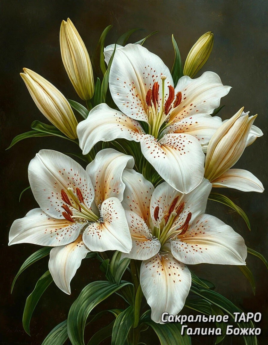 Карта предвещает благоприятный, спокойный день. Она способствует успешному ходу дел и часто говорит о протекции, помощи, одобрении, поощрении и продвижении по службе. ЛИЛИИ финансово устойчивая карта: совершайте сделки, крупные покупки, инвестируйте. В отношениях сегодня много романтики, искренних чувств и красивых ухаживаний.