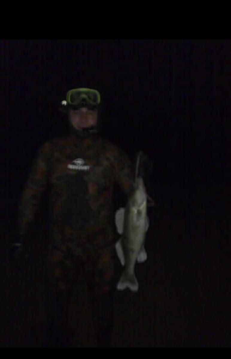 Ночная охота под водой.