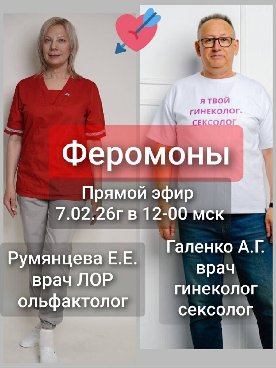 День, когда мы говорим о чувствах. Но любовь — это не только про поэзию и «бабочки в животе». Это ещё и "химия". Запахи. Сигналы тела. Феромоны. То, что мы не осознаём — но именно это часто и притягивает друг к другу. ⏰ 7 февраля в 12:00 — прямой эфир Поговорим: — что такое феромоны на самом деле — как работает обоняние и выбор партнёра — почему «запах человека» может отталкивать или влюблять — и где тут гинекология, гормоны и сексуальное здоровье Спикеры: Елена Румянцева — отоларинголог, сурдолог, ольфактолог Андрей Галенко — гинеколог, сексолог Присылайте вопросы — разберём в эфире. Будем ждать вас ☝ Андрей Галенко Всем не болеть ❤️! #гинекологспб #гинекологияприморскийрайон #гинекологнакомендантском #лечениебезопераций #послеродовспб