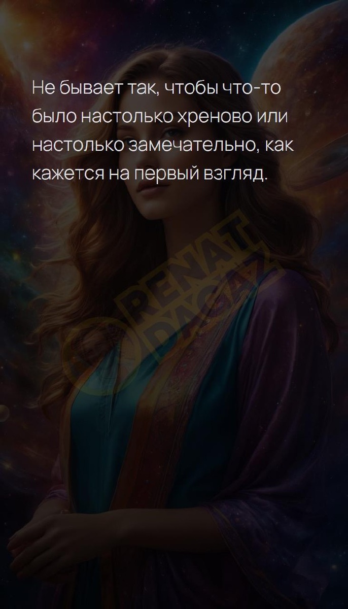 Не бывает так, чтобы что-то было настолько хреново или настолько замечательно, как кажется на первый взгляд. Твой Ангел/Демон | Архитектура вашей души T | VK | Pin | YouTub | Dzen #верность #мотивациякаждыйдень #мудрость #психосоматика #мотивациякаждыйдень #путьксебе #богатство #вдохновись #баланс #5число #5февраля