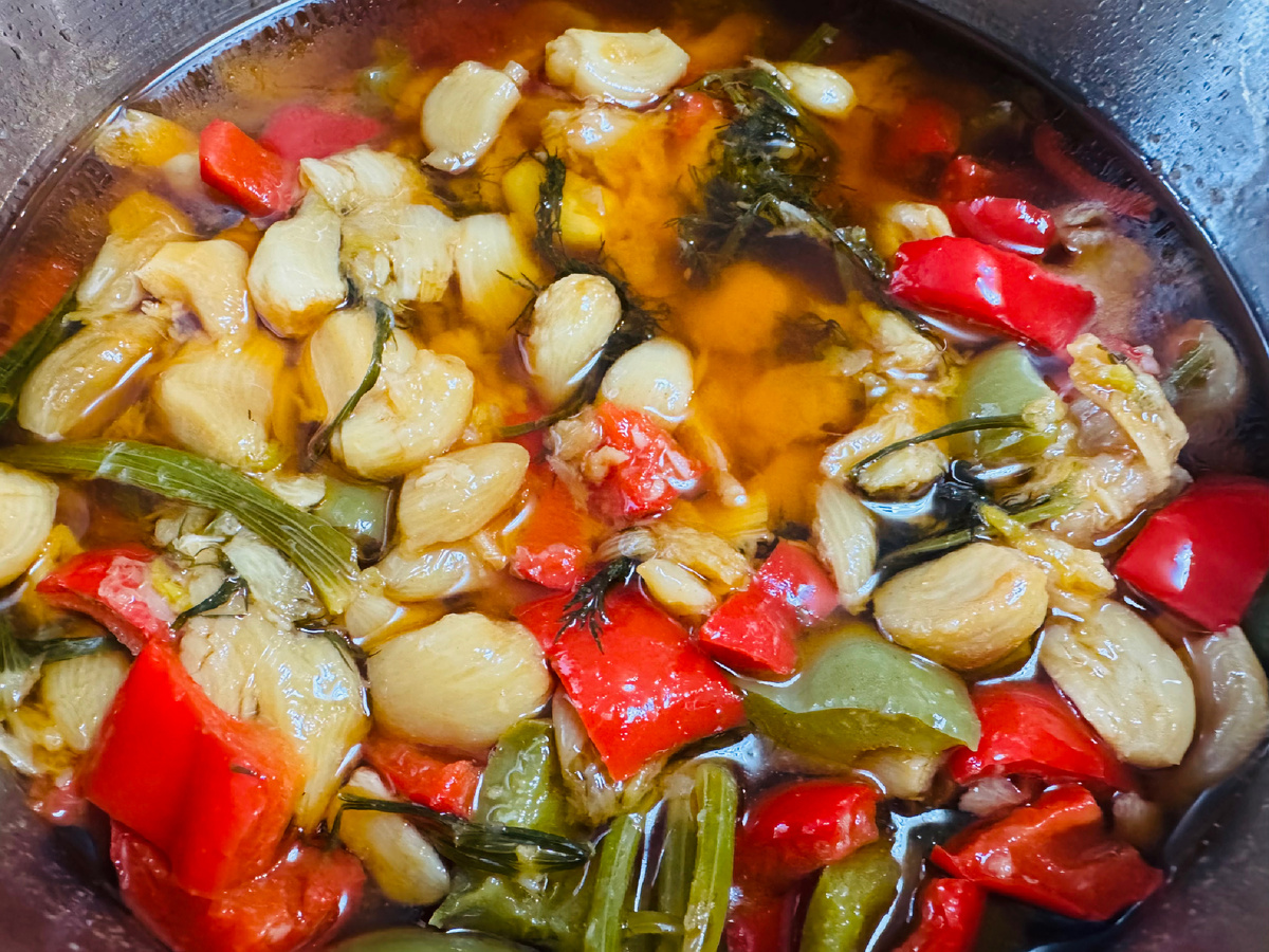 - ✅Доведите до кипения и сразу уменьшите огонь до минимума, чтобы чеснок томился.