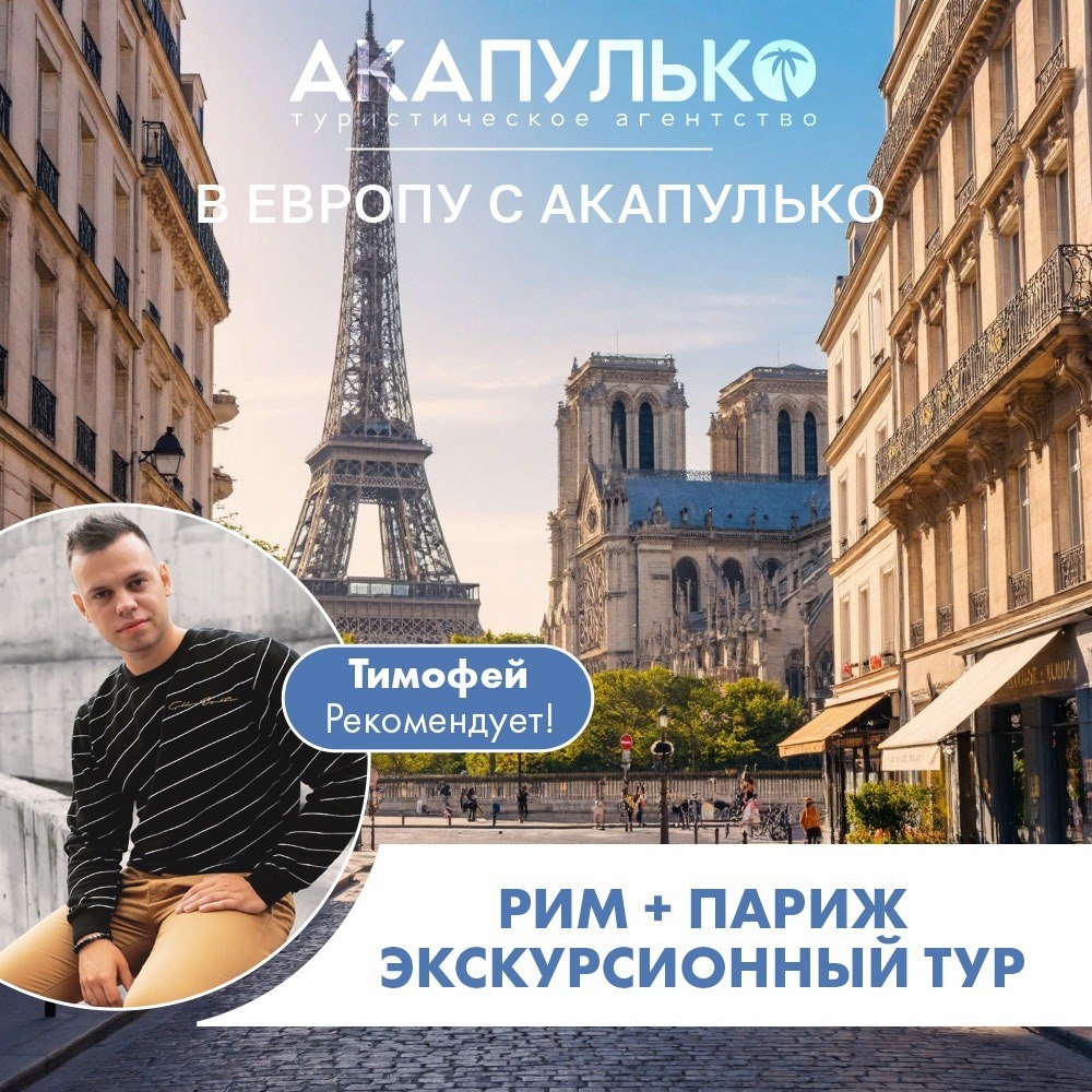 🍝📖📖📖➕📖📖📖📖📖 ✈Вылет из Москвы до Рима ( с удобной стыковкой в Стамбуле) 21 июня на 8 дней, обратно вылетаем из Парижа в Москву Экскурсионный тур "Рим+ Париж на поезде" (Рим 4 ночи + Париж 3 ночи) ✅Какие локации посещаем: Рим, Неаполь, Париж ✅ Включены обзорные экскурсии: 🏛Рим - экскурсия по Риму позволит увидеть основные достопримечательности Вечного города и узнать его увлекательную историю 🥐Париж - Прогулка на кораблике по Сене с осмотром достопримечательностей Парижа. ✅В стоимость входят: Авиабилеты с багажом до 30 кг, проживание в отелях 4* с завтраками, трансферы по программе, мед.страховка, страховка от невыезда, Итальянская виза, страховка визовый риск, обзорные экскурсии+ Ж/Д билеты из Рима в Париж ✨359 400 на человека при 2х местном размещении Хочешь отправиться в интересное путешествие и увидеть 2 страны сразу? Ставь + в комментариях или пиши @Tima_Acapulco❤ #В_Европу_с_Акапулько 📞Звоните: +79124829034 ☕Приезжайте: Пермь, ул.Советская, 54, офис 203