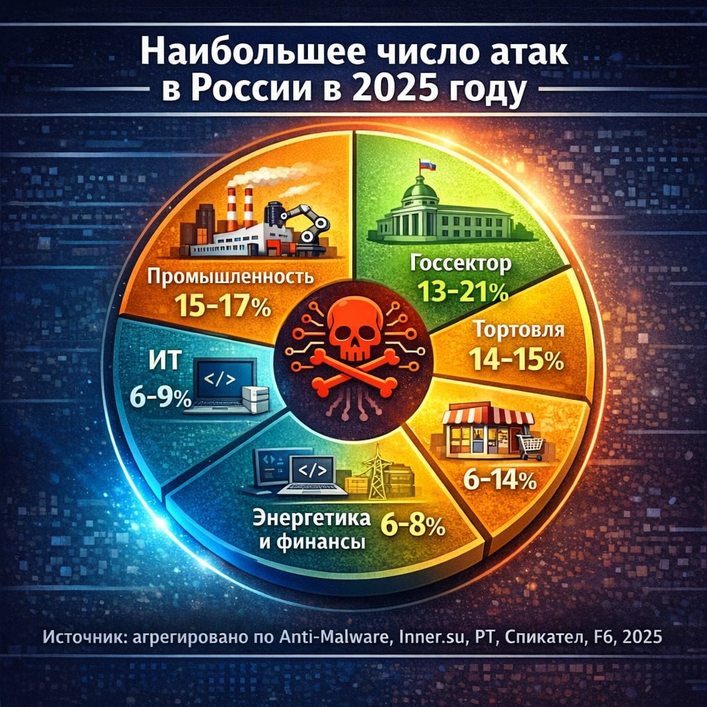 ⚠️ Шифровальщики стали ключевой угрозой для корпоративного сектора. По данным F6, cамое крупное требование кибервымогателей в России за 2025 год — 50 BTC (500 млн ₽ на момент атаки), выдвинутое преступниками. По данным F6, это вдвое выше максимального уровня 2024 года (240 млн ₽). 📊 Средние суммы желаемого выкупа в 2025-м: 💰для крупного бизнеса — 4–40 млн ₽ 💰для малого и среднего — 240 тыс.–4 млн ₽ 🔍 Ключевые тенденции: 🔹Некоторые преступные группы сместили фокус от DDoS и утечек к шифровальщикам 🔹Зафиксирован рост числа атак вымогателей на 15% по сравнению с 2024 годом 🔹Злоумышленники всё чаще делают точечные атаки на платёжеспособные компании 🔹Чаще всего атакуют производственные (17,1%), торговые (14,3% оптовые, 12,9% розничные) и ИТ-компании (7,1%) 🔹76% атак в 2025 году были направлены на уничтожение инфраструктуры Что делать если вас зашифровали вымогатели? Смотреть ответ на Rutube Смотреть ответ на Youtube Платить или не платить выкуп? Статистика которую надо знать.