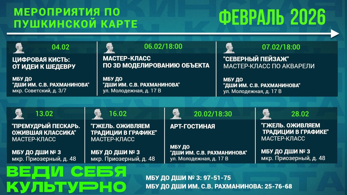 Оформляйте её, если ещё не сделали это — ежегодно баланс карты пополняется на 5 тысяч рублей. По ней молодёжь от 14 до 22 лет включительно может посещать самые интересные культурные события. Подробнее о мероприятиях в Новом Уренгое — в карточках и на сайте пушка.рф. ❄️ НУР. Официально | Подписаться в MAX