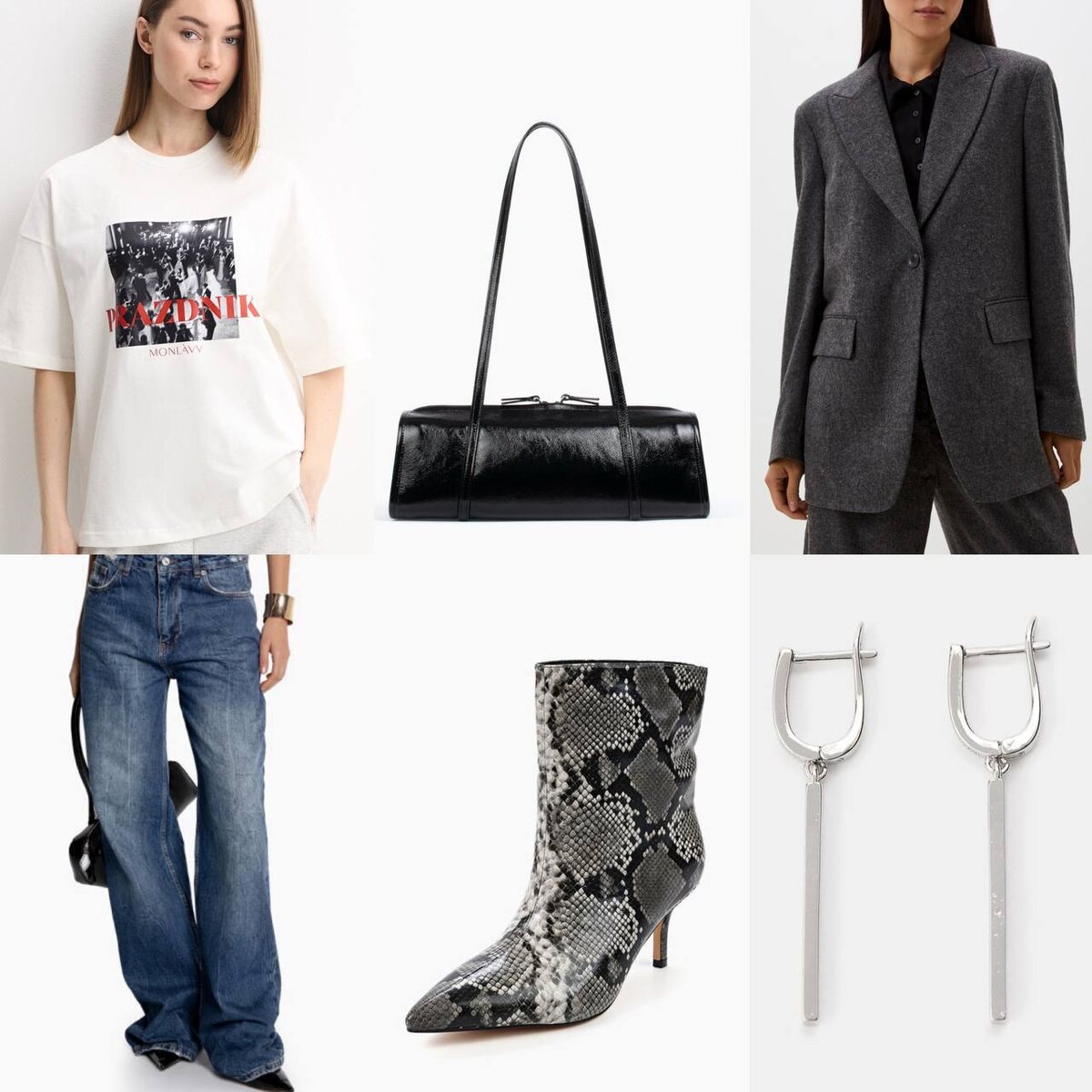 И в пир, и в мир, как грится) Пусть не такой яркий, как вы просили, но зато с какими принтами☺️🤌 #lamoda Футболка 4900 рублей Джинсы 16900 рублей Сумка 13000 рублей Ботильоны 6300 рублей Жакет 16900 рублей Серьги 1100 рублей ✅Мой канал про бюджетный wb здесь #футболки #деним #сумки #пиджакижакеты #обувь #аксессуары #кэжуал #нескучныйкэжуал