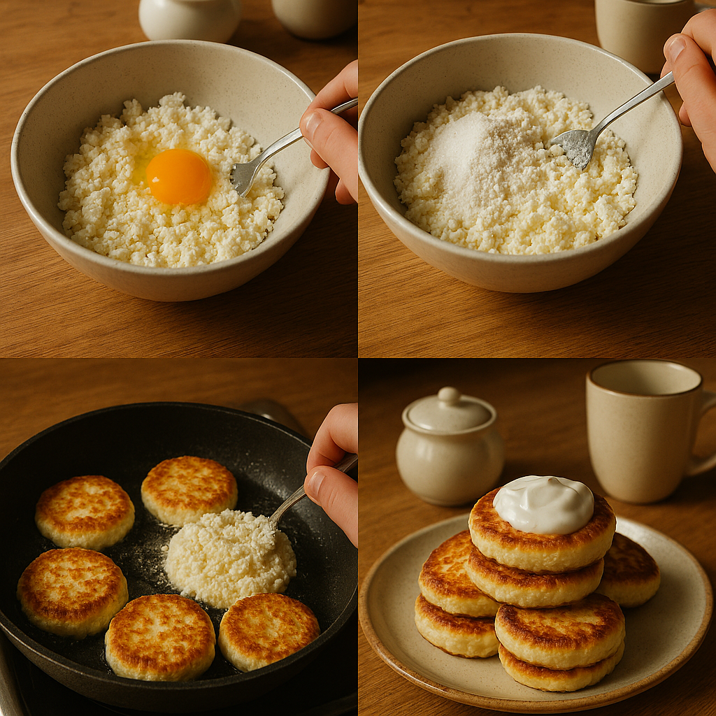 Желток падает в творог, как маленькое солнце, которое решило заглянуть на кухню.
