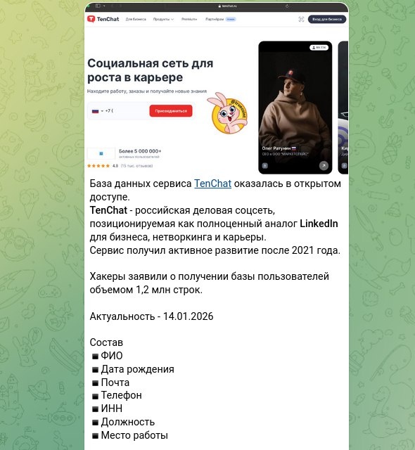 📝 Кратко: 4 февраля 2026 года в российской деловой социальной сети TenChat, ориентированной на профессиональное общение, развитие личного бренда и проверку контрагентов опровергли информацию об утечке данных клиентов. Читать далее 🔗 Читать оригинальную статью (ссылка) 📊 Источник: Habr ⏰ Время: 05.02.2026 04:16 📱 Другие каналы: 🪙 ВКрипту | 🎮 ВИгрухи | 🏎️ ВТачки | ✈️ ВТравелу #gadgets #гаджеты #технологии