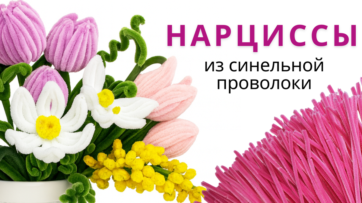 Это маленькая эстетика, которая остаётся с вами надолго. Такие букеты часто выбирают: Например, 8 марта из синельной проволоки — один из самых популярных запросов, потому что цветы получаются особенно нежными. Нарциссы из синели — это идеальный вариант, если хочется, чтобы цветы радовали долго. Можно собрать целый буке