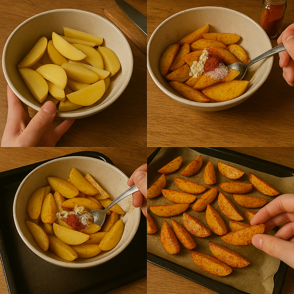 Две столовые ложки — этого достаточно, чтобы каждая долька стала золотистой, но не жирной.