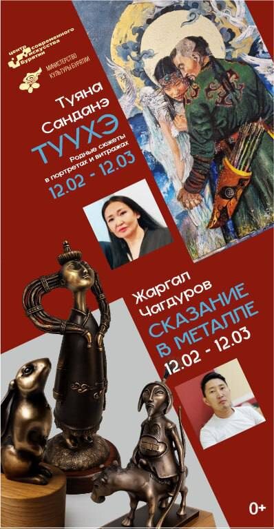 ! Друзья! 12 февраля в 17:00 в ЦСИ «Залуу» открываются сразу две яркие персональные выставки молодых авторов из Бурятии. Не пропустите! 🖼 Туяна Санданэ «Түүхэ»: Художница-самоучка из села Укурик представляет мир бурятских легенд через современные техники. Это путешествие в мистический мир предков, где каждая работа — мост между прошлым и настоящим. 🗿 Жаргал Чагдуров «Сказание в металле»: Первая персональная выставка скульптора, выпускника ВСГТУ. В бронзе оживают герои бурятских сказок. Уникальный синтез фольклора, инженерной мысли и современной скульптуры. 📍 Открытие: 12 февраля, 17:00 по ул. Коммунистическая, д.19 📅 Работают до 12 марта 🖼 Ждём всех, кто ценит искреннее искусство, рождённое на нашей земле.
