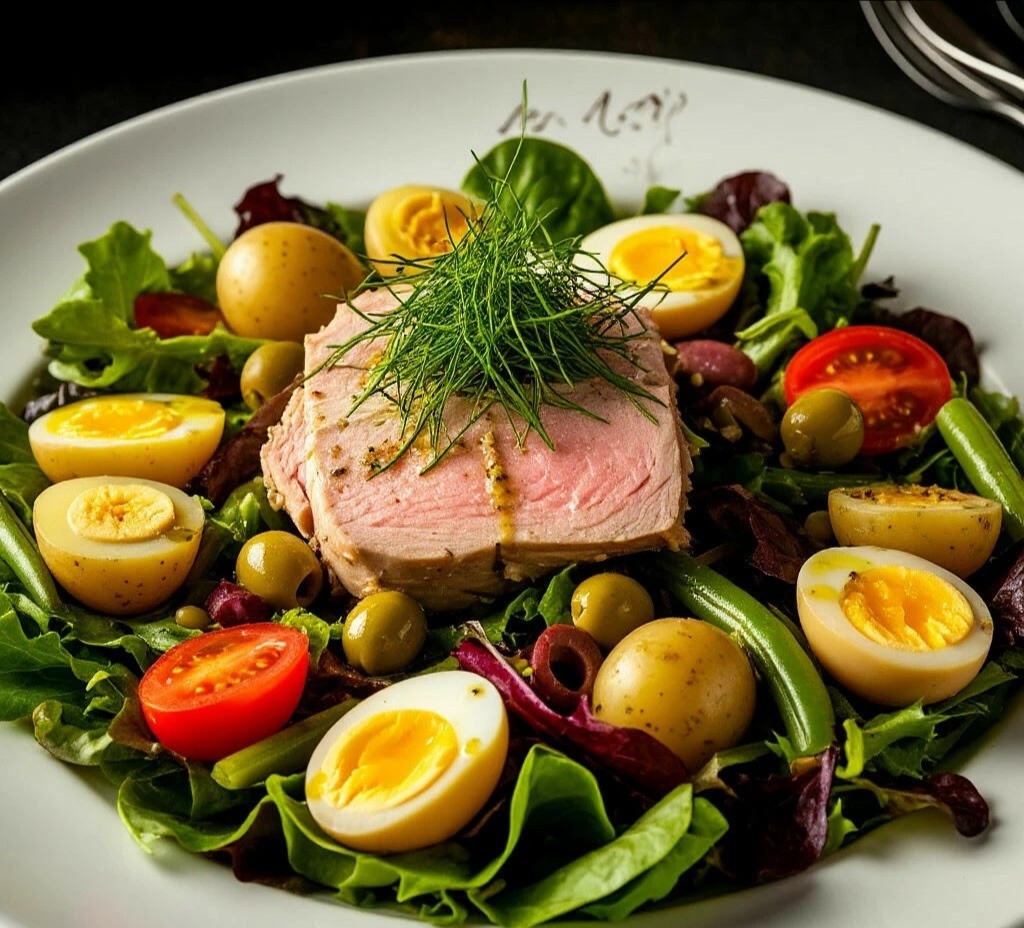 ПОЧЕМУ ЭТО ШЕДЕВР? 🎨🏆 Потому что это идеальный баланс!⚖️ В нём есть всё: белок (тунец, яйцо), сложные углеводы (картофель), клетчатка и витамины (овощи, зелень), полезные жиры (оливковое масло). Он сытный, но не тяжелый, красивый и очень французский в своей простоте и элегантности. Это салат, который можно подать на званый ужин, и он никогда не подведёт! 👌