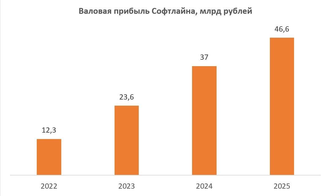 Софтлайн стала первой российской IT-компанией, раскрывшей предварительные результаты за 2025 год, которые вновь подтверждают стабильный рост бизнеса. Итак, оборот компании вырос на 9% до 131,8 млрд рублей. Эмитент не только продаёт сторонние решения, но и делает ставку на реализацию собственных высокомаржинальных IT-решений. В этой связи более репрезентативной метрикой является валовая прибыль, которая в отчетном периоде рекордно увеличилась на 26% до 46,6 млрд рублей. Компания пишет, что нацелена именно на прибыльный рост и повышение рентабельности. Стоит отметить, что эмитент уложился в свой гайденс по этому показателю 43–50 млрд рублей, поскольку в последнее время многие IT-компании пересматривали свои прогнозы в сторону понижения. 📈 Рост бизнеса обеспечивает не только органическая динамика, но и активный M&A-трек. Ежегодные сделки позволяют компании не просто укреплять позиции в ключевых сегментах, но и формировать устойчивый диверсифицированный портфель компетенций. Компания подт