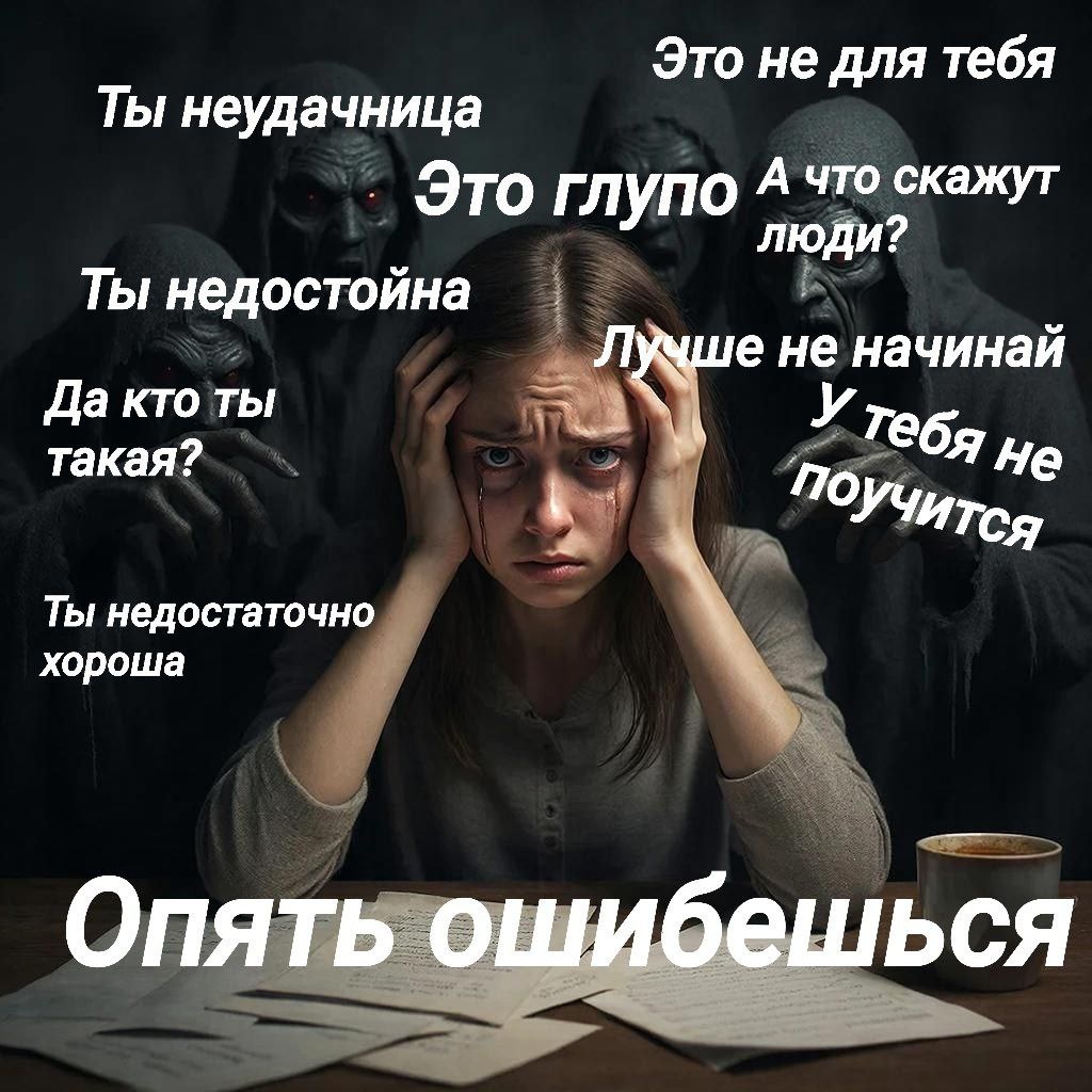 🤎 🤎🤎 🤎🤎🤎🤎🤎⚪️⚫️⚪️ Последствия всех "нельзя" и "должна" в моей жизни обернулись моим полным неверием в свои силы. Я очень остро реагировала на любую критику. Критика= я плохая, некчемная, неудачница. Ошибаться нельзя. Любая ошибка опускала мою самооценку на самое дно. Либо идеально, либо никак. Я должна быть лучшей. ( зачем?для кого?по сравнению с кем? Непонятно, но надо). Если я работала, то только в найме. Кто-то должен быть выше меня - решать, давать свою оценку.Мне нужно было одобрение окружающих. Моя ценность зависела от оценки других людей. Поэтому я всегда училась, чтобы стать лучшей в своей сфере, чтобы от меня нельзя было отказаться. Страх отвержения. Страх ошибиться. Страх будущего. Страх критики. Я искала одобрения и подтверждение своей ценности. Работать на себя? Даже мысли такой не было. "Ты не справишься " - говорил Внутренний голос. Я старалась соответствовать чужим ожиданиям. Свои успехи я в упор не замечала, а малейший провал становился для мен
